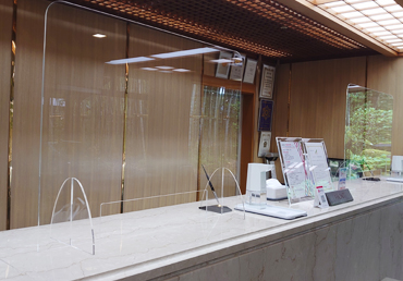 フロントや売店、従業員食堂に飛沫対策のパーテーションを設置!