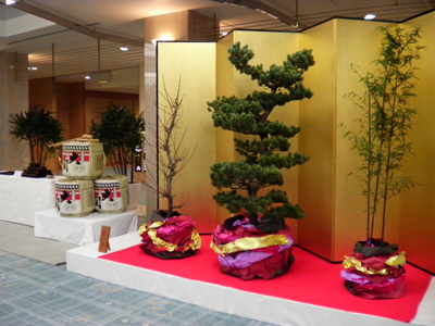 松竹梅が飾られた欽山のロビーでは、皆様に
