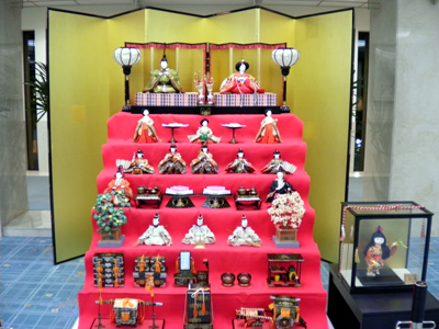 桃の節句に向けてロビーにお雛様を飾っています♪