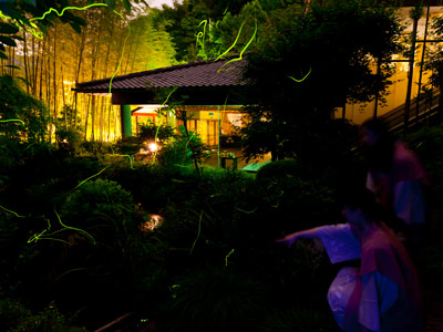 よる20:00からは蛍鑑賞のためお庭のライトダウンを実施。