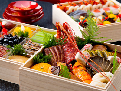 伊勢海老に鮑、唐墨も入った豪華な一の重をお届け