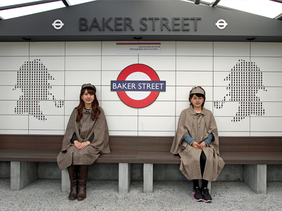 インヴァネスケープ(ホームズの衣装)を身にまとい、