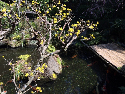 欽山のお庭の様子 ~枝垂梅と山茱萸が見頃に~
