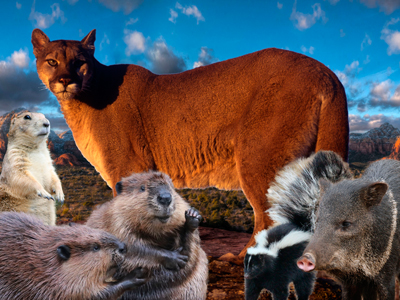 アメリカビーバーの家族やシマスカンク、クビワペッカリー、