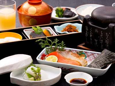 朝食は料亭旅館ならではの和定食を。(全9品)
