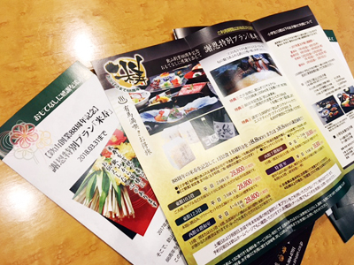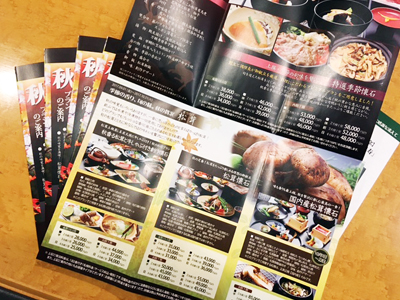 この秋おすすめの宿泊プランを掲載したパンフレットと、