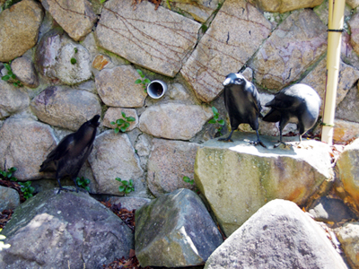 の二神が、三羽の傷ついたカラスが湧き出た泉で傷を癒しているのを見つけ