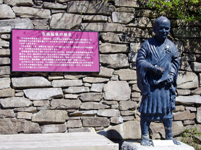 行基の像の後ろには、有馬温泉の歴史が書かれた看板が…