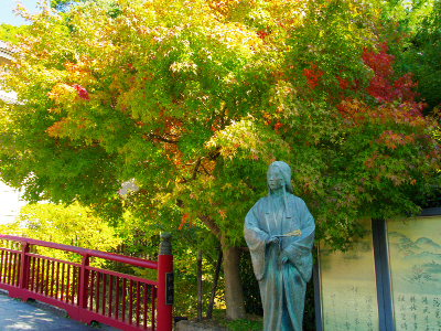 温泉街へ降りてくると、まだまだ紅葉はこれから。