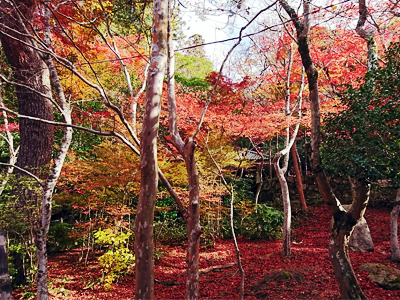 真っ赤な絨毯のようにもみじの落ち葉が広がりとても幻想的でした。