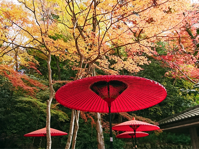 到着した瞬間から赤、黄、緑の色鮮やかな紅葉が、