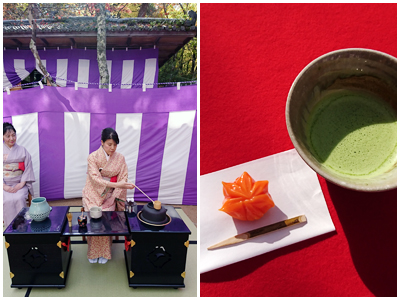 まるで色づいたもみじの様なお茶菓子とお抹茶を、