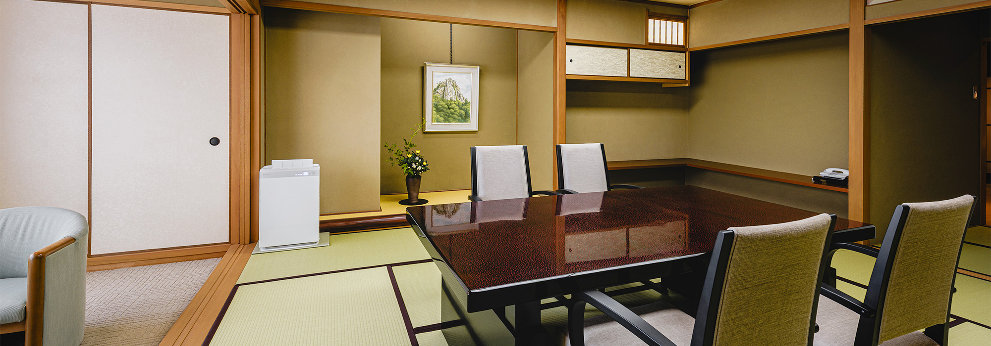 【和室(禁煙)】本間(和室12.5畳)・副室(和室6畳・ツインベッド)・控の間・広縁 又は 【和室(禁煙)】和室(15畳)・控の間・広縁 ・お部屋から眼下に石庭、有馬の街並みや有馬の山々をご覧いただけます。 ・西館7階専用アメニティーをご用意しております。 ・加湿空気清浄機を常設しております。 ・大浴場は西館にございますので、そのままエレベーターにてご移動が可能です。 |