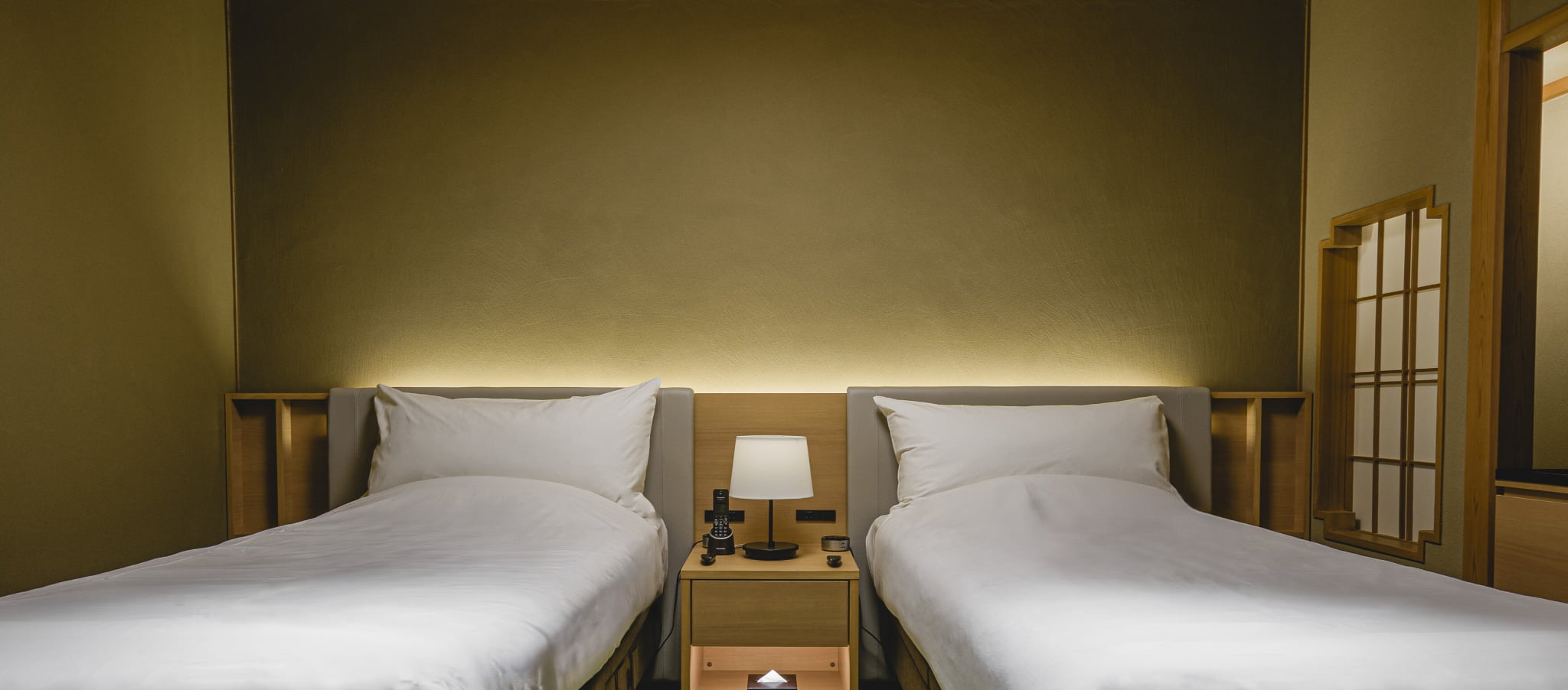 高速Wi-Fi、洗浄機付トイレ、浴室(温泉ではございません)、次世代型マルチ機能付き音声認識ベッド「シモンズ シムレスト」(二間客室のみ)、加湿空気清浄機、セーフティーボックス、スマートテレビ、衣類消臭スプレー、光触媒除菌抗菌スプレー、コーヒーメーカー、お茶セット、電気ケトル、ドライヤー「Dyson」、茶香炉、ミニバー&冷蔵庫(アルコールを含むお飲み物はフリードリンク)