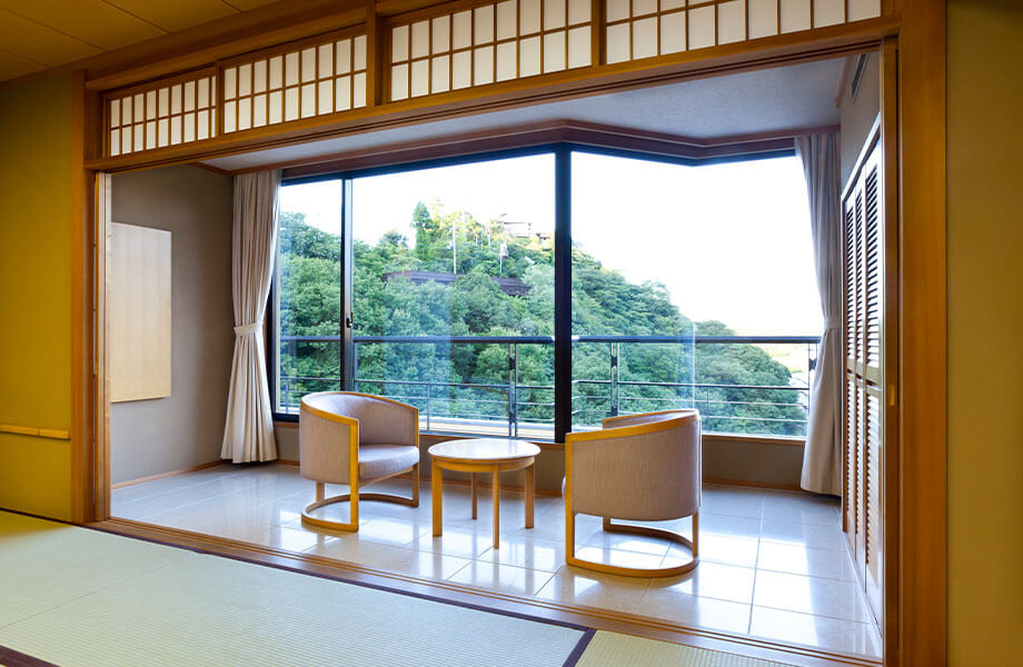 西館に位置し、眼下には石庭が広がり、有馬温泉の街並みや有馬の山々が一望できます。